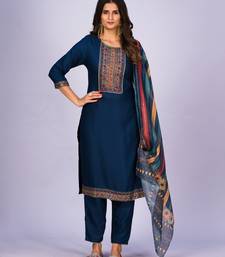 Clemira dark blue color embroidered women's kurta palazzo dupatta set