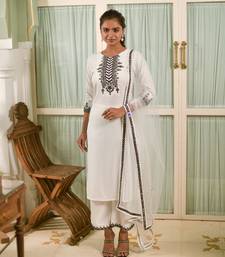 Clemira white color embroidered women's kurta palazzo dupatta set