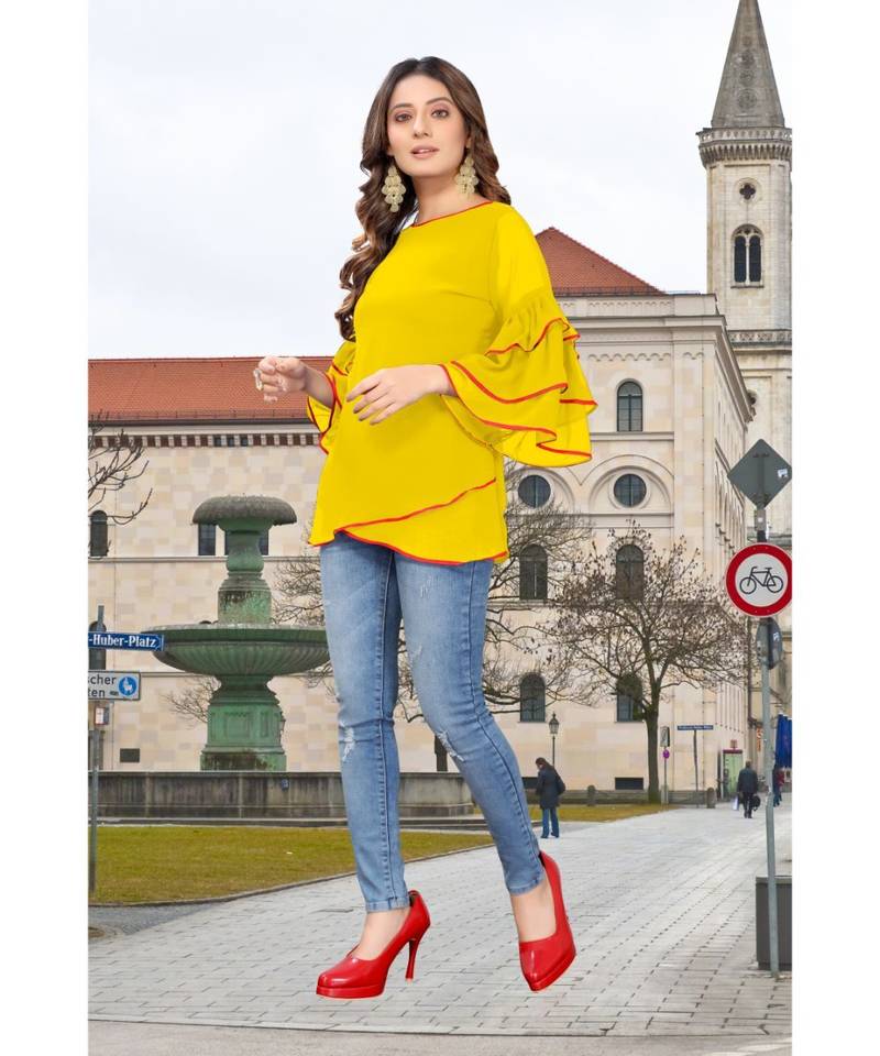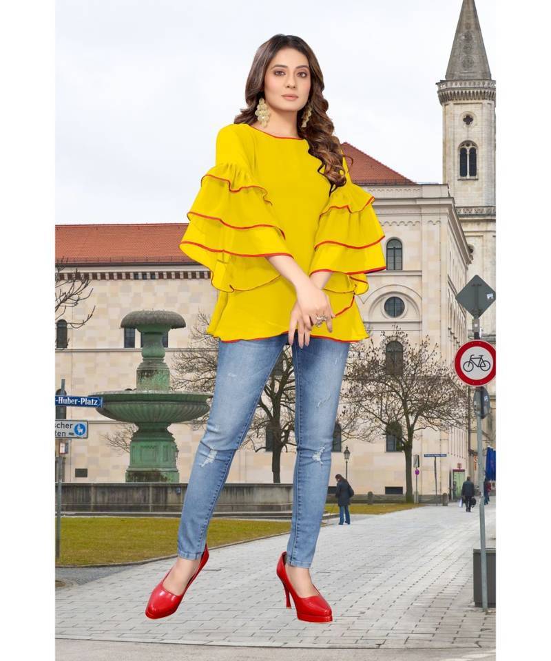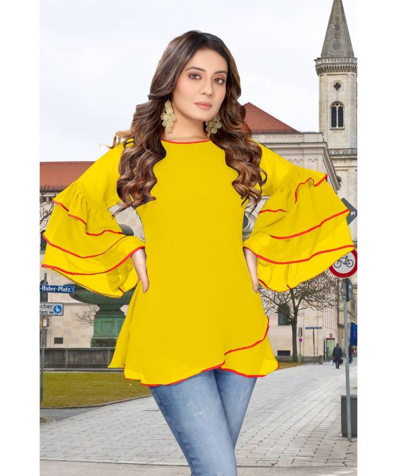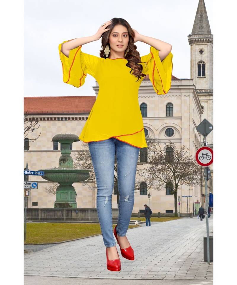 Product Name | Cloth Boost Presenting For Beautiful Girl's And Women's Georgette Below Knee Short Sleeve Yellow Top | |