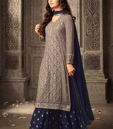 Light-grey embroidered georgette salwar with dupatta semi stitched