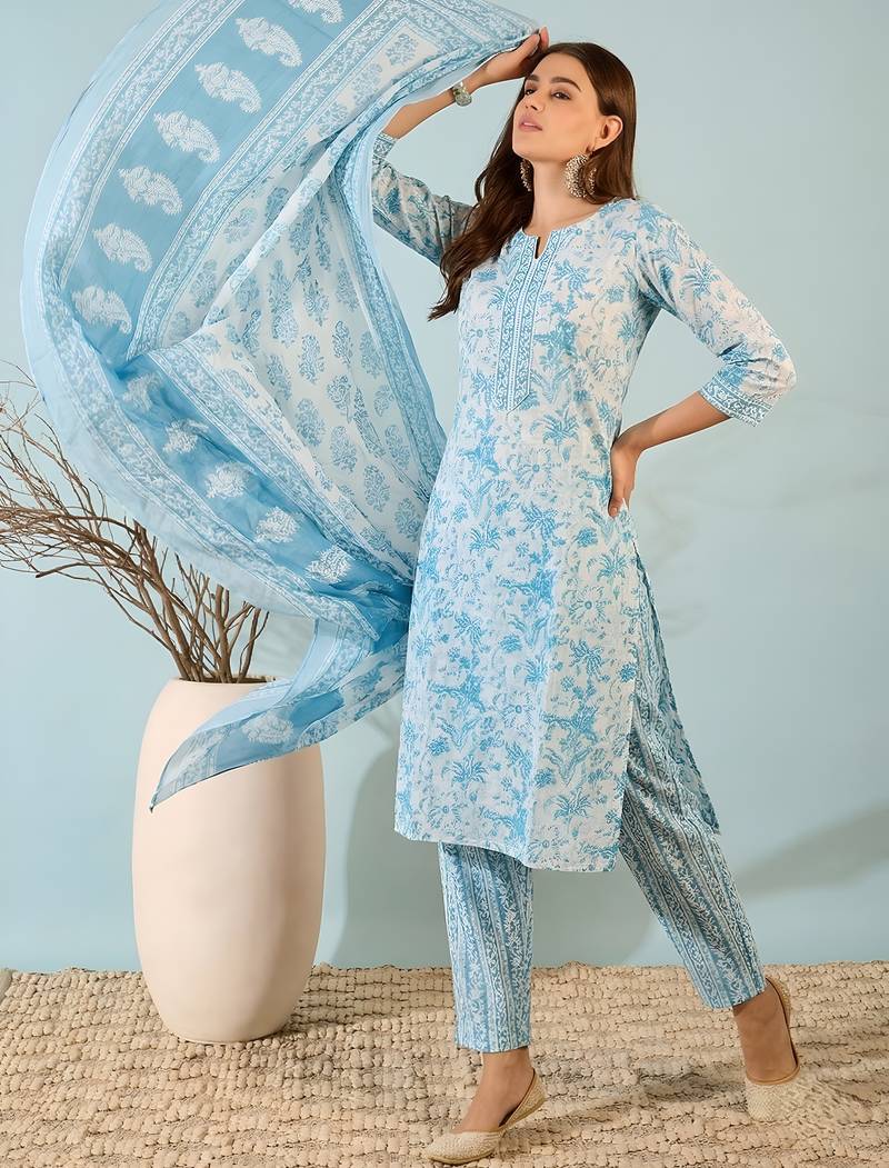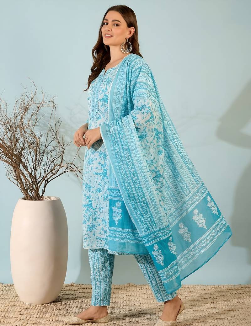 | Product Name | Blue Printed Cotton Kurta Set With Dupatta | |