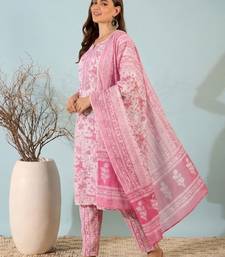 Blush pink printed cotton kurta set with dupatta