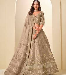 Beige art silk embroidered semi stitched lehenga choli size up to 42