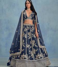 Blue art silk embroidered semi stitched lehenga choli size up to 42