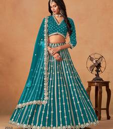 Blue art silk embroidered semi stitched lehenga choli size up to 42