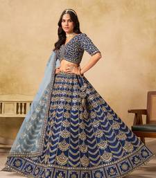 Blue art silk embroidered semi stitched lehenga choli size up to 42