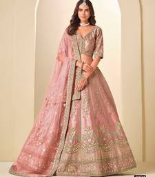 Pink art silk embroidered semi stitched lehenga choli size up to 42