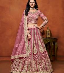 Pink net embroidered semi stitched lehenga choli size up to 42