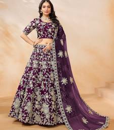 Purple art silk embroidered semi stitched lehenga choli size up to 42