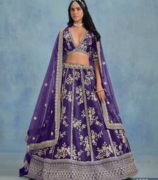 Violet art silk embroidered semi stitched lehenga choli size up to 42