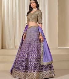 Violet art silk embroidered semi stitched lehenga choli size up to 42