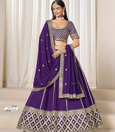 Violet art silk embroidered semi stitched lehenga choli size up to 42