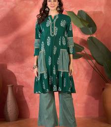| Product Description | Green Kurta Pant Dupatta Set With Ethnic Block Print Detailing And Lace Highlights. Styled With Flared Gathered Hem Kurta, Matching Printed Straight Pants, And A Coordinated Dupatta For A Chic Traditional Look. |