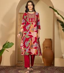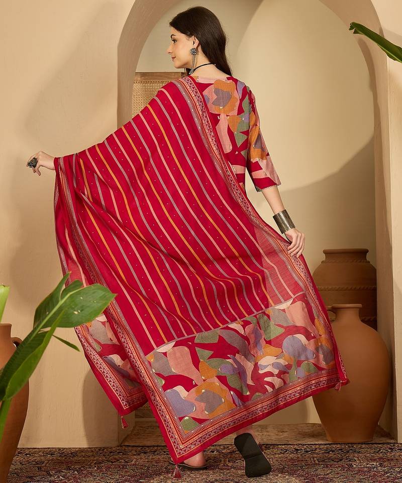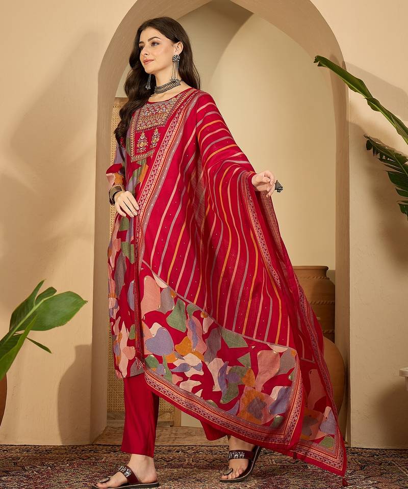 | Product Description | Red Kurta Pant Dupatta Set Featuring Multicolor Abstract Floral Print And Detailed Embroidered Yoke. Paired With Solid Navy Straight Pants And Striped Printed Dupatta For A Stylish Ethnic Appeal. |