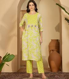 | Product Description | Lime Green Kurta Pant Dupatta Set With Delicate Floral Print And Subtle Lace Detailing. Paired With Matching Straight Pants And A Light Printed Dupatta For A Fresh And Elegant Ethnic Look. |