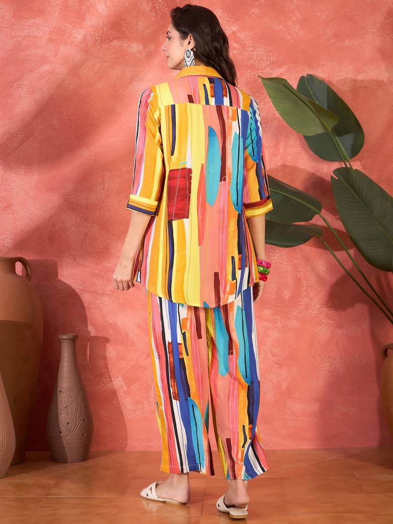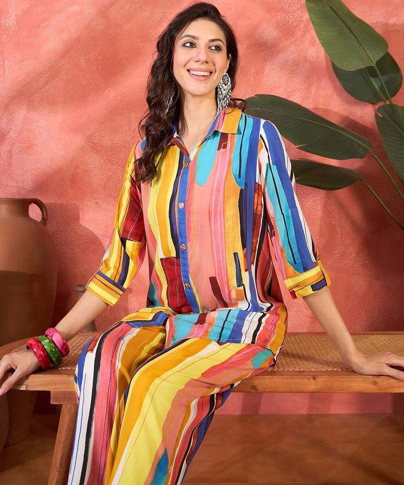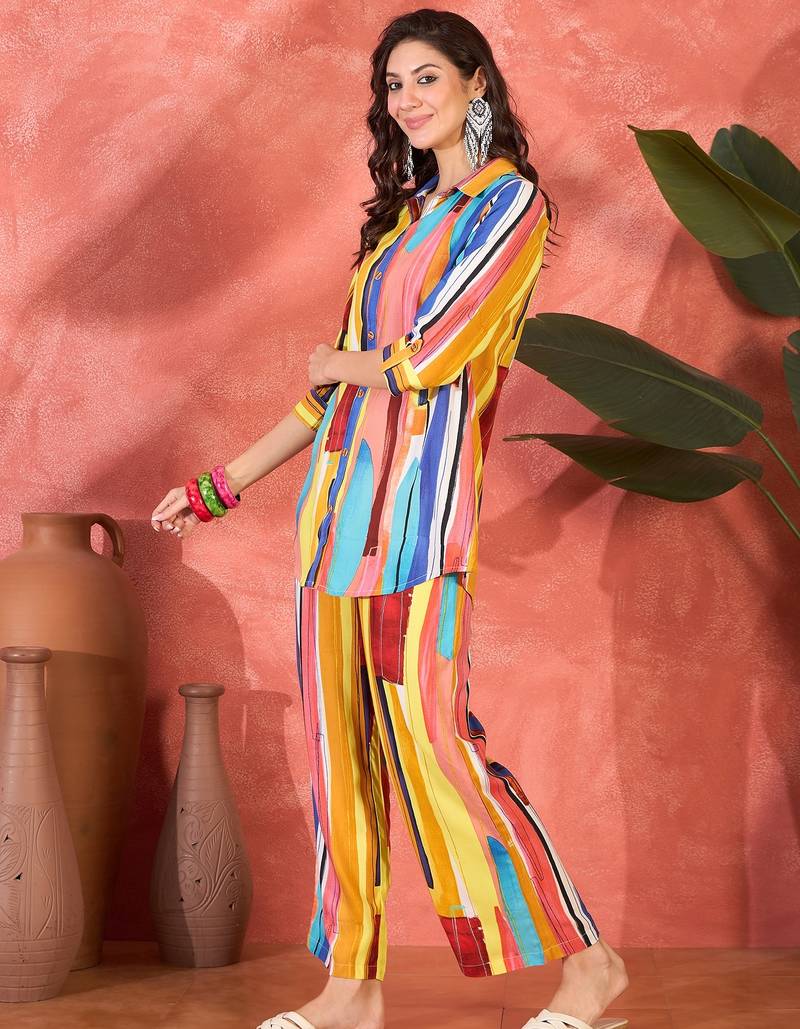 Women multi viscose rayon printed co-ords