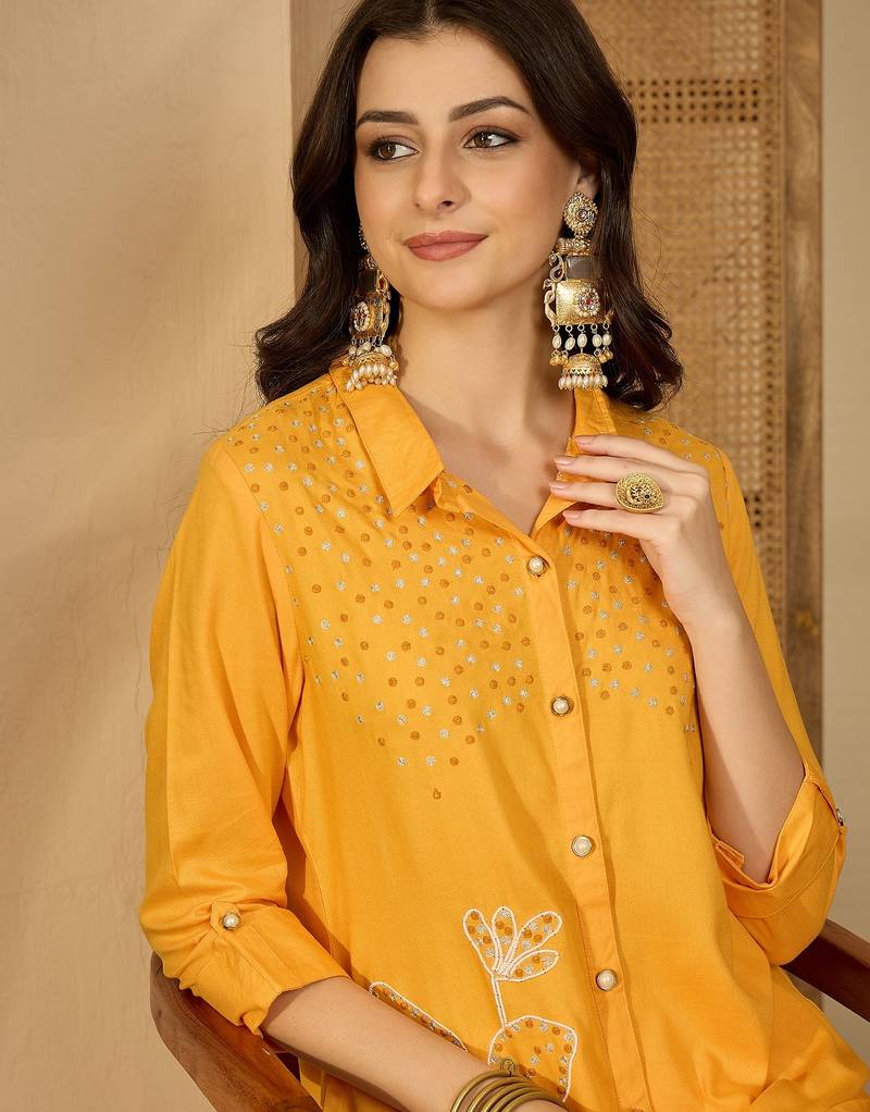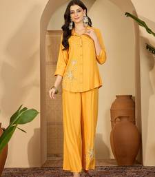 | Product Name | Women Yellow Embroidered Viscose Rayon Shirt & Trousers Co Ords | |