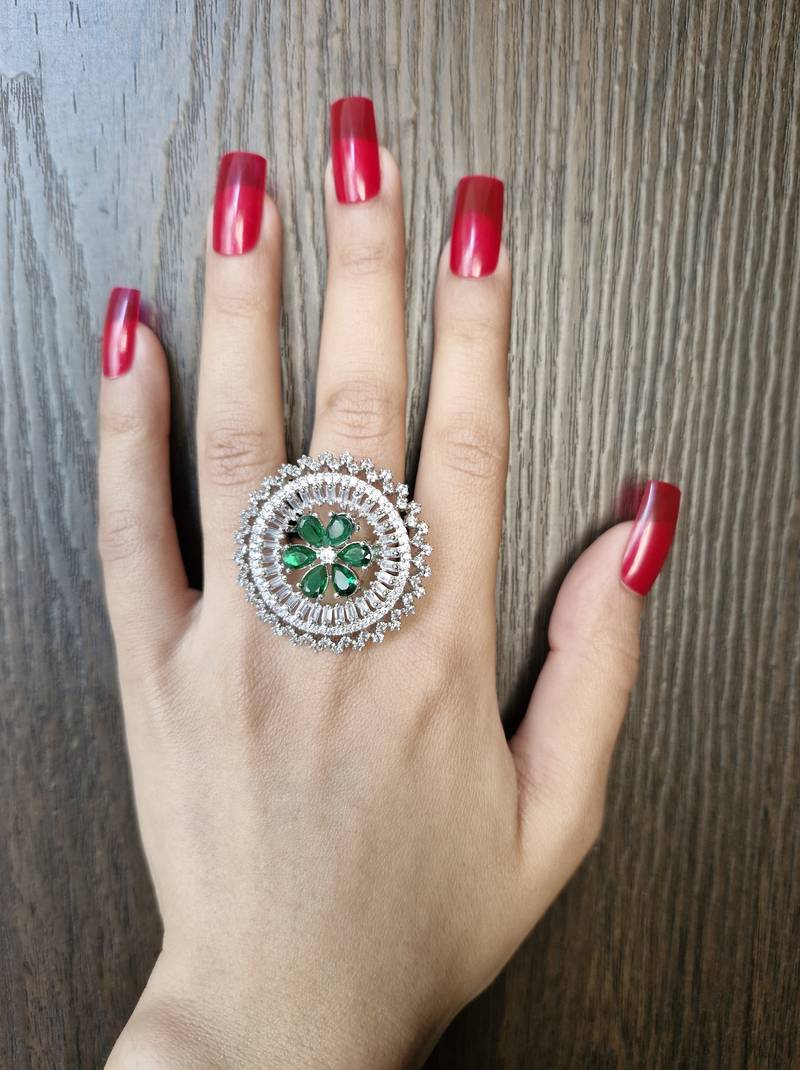 Madhavi green american diamond ring