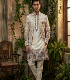 Cream thread and sequins embroidered indowestern
