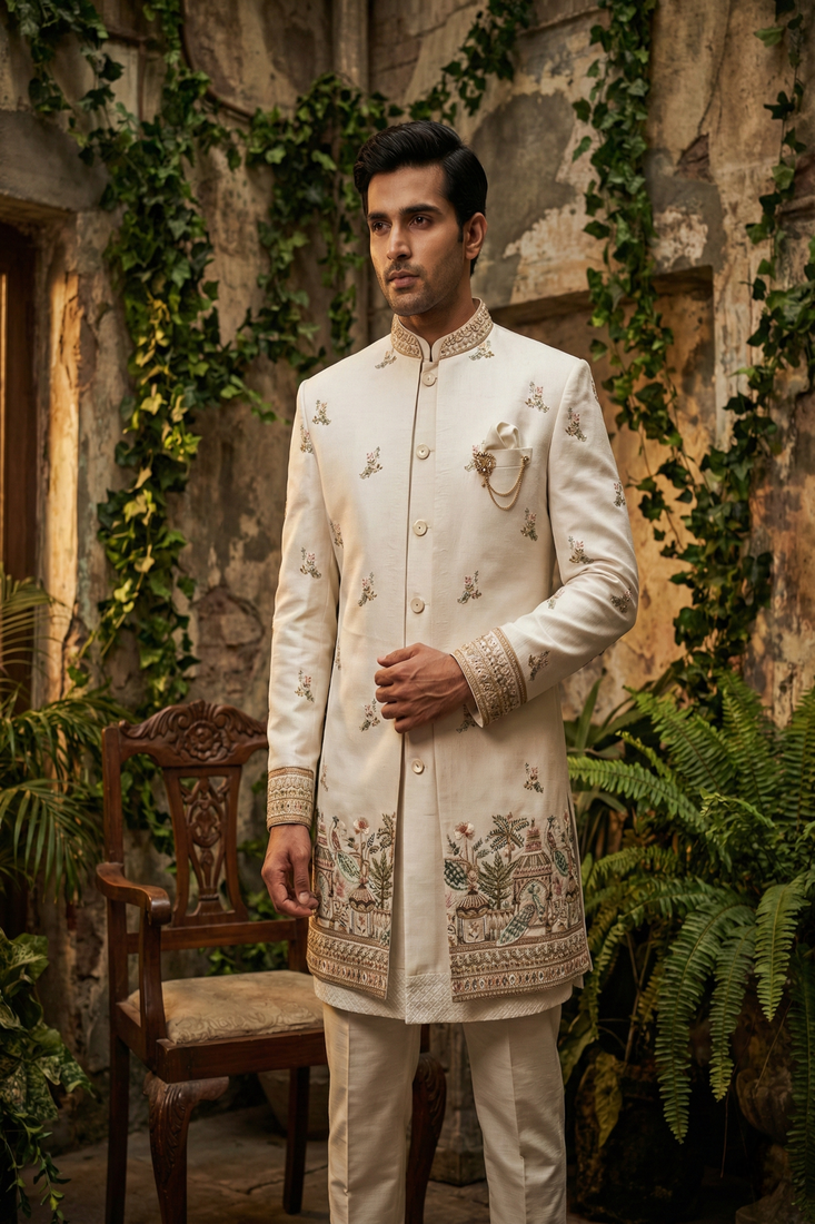 | Product Name | Cream Thread And Sequins Embroidered Indowestern | |