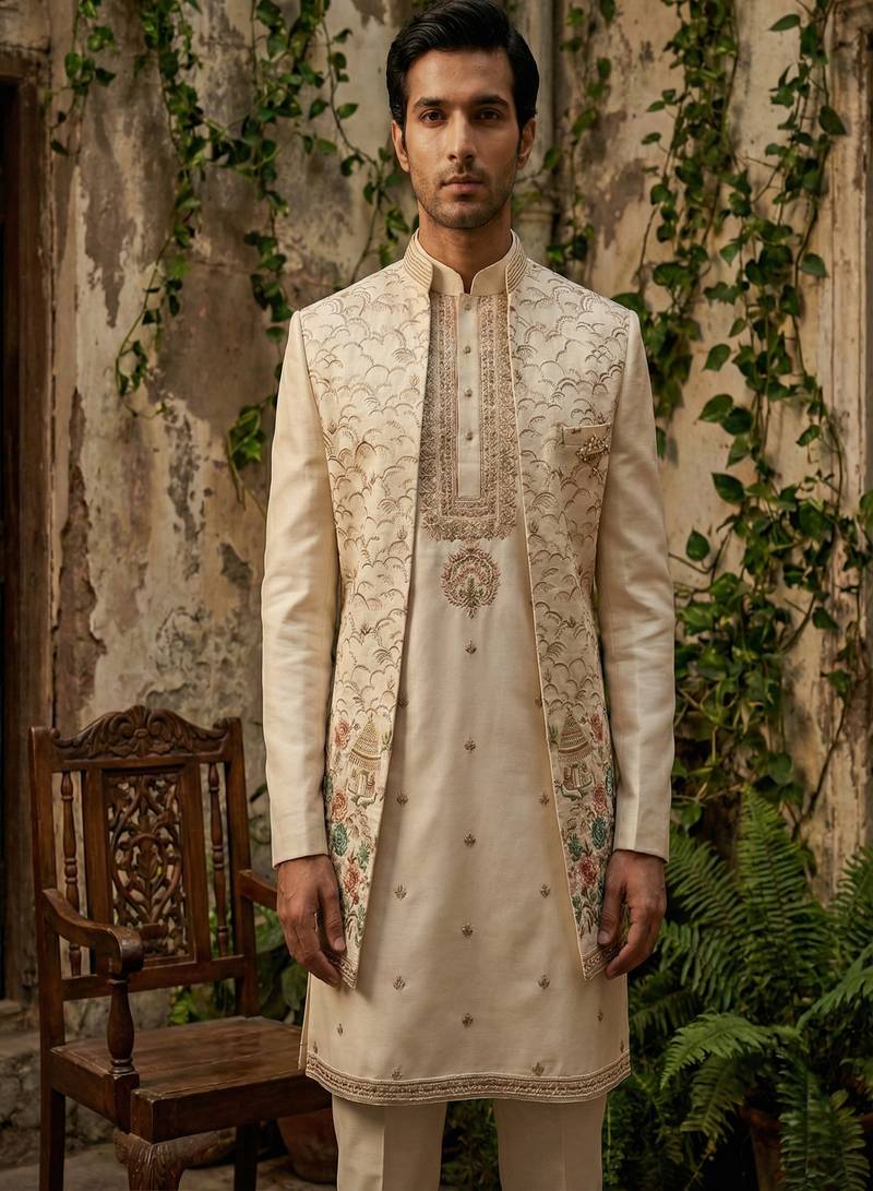 | Product Name | Fawn Thread And Sequins Embroidered Indowestern | |