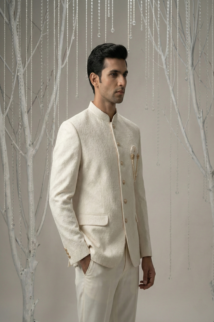 | Product Name | Ivory Thread Embroidered Bandhgala On Silk | |