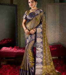 Deep bronze & navy blue banarasi silk saree