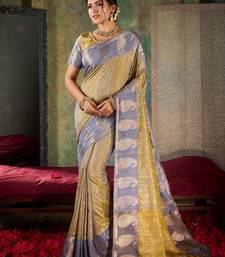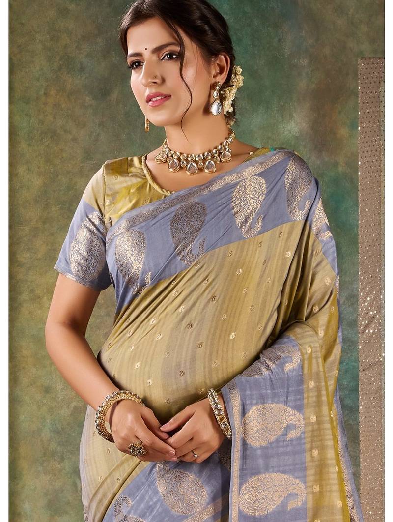 Elegant olive & slate blue banarasi silk saree