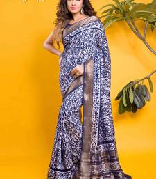 Navy blue abstract ikkat print saree
