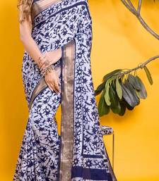 | Product Name | Navy Blue & White Floral Batik Print Saree | |