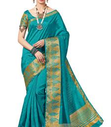 Blue woven banarasi silk saree with blouse