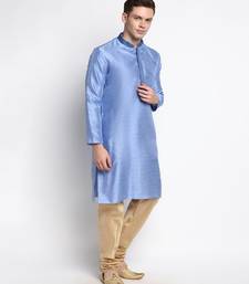 | Product Description | Devoiler Men's Embriodered Steel Blue Silk Kurta |