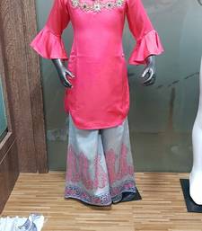| Product Description | Full Sleeves Aline Kurta With Flower Embellised Neck Handwork, Palazzo With Daman Block, Pink & Grey, S: 24/34, Age Grp: 6to12yrs |