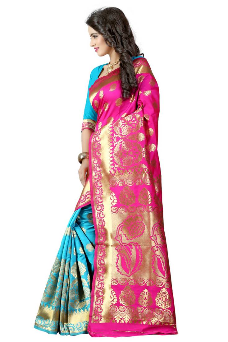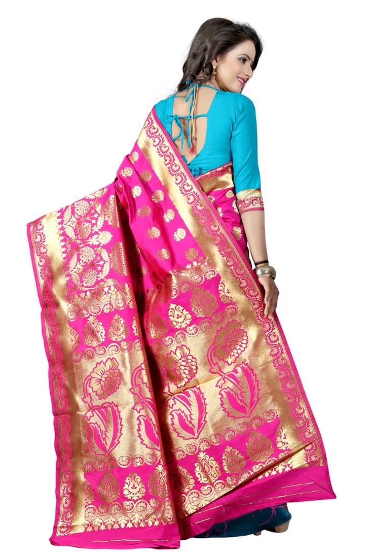 | Product Name | Pink Woven Poly Cotton Saree With Blouse | |