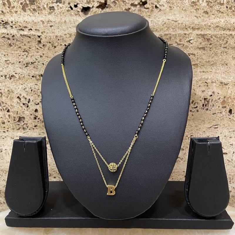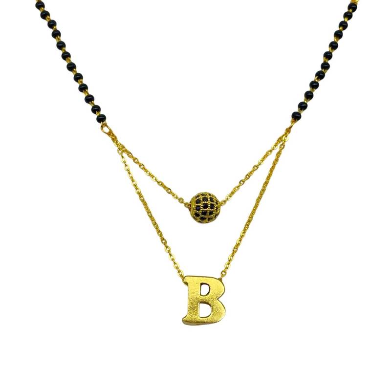 B Letter Mangalsutra Ad Black Ball Pendant Short Mangalsutra Designs Name Mangalsutras (20 Inches)