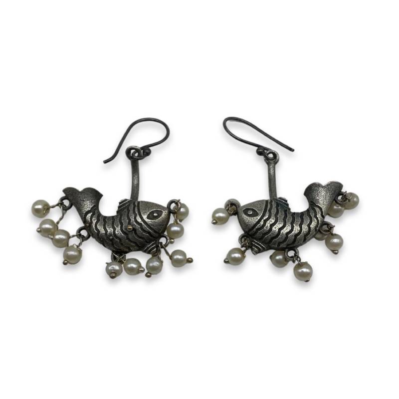 German oxidized silver earrings fashion jewellery fish designs dangler earrings for women & girls