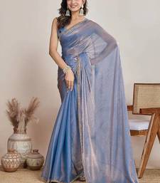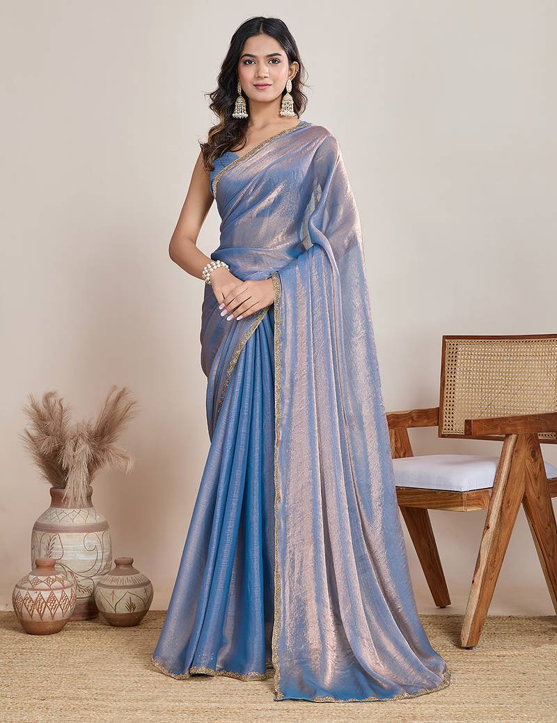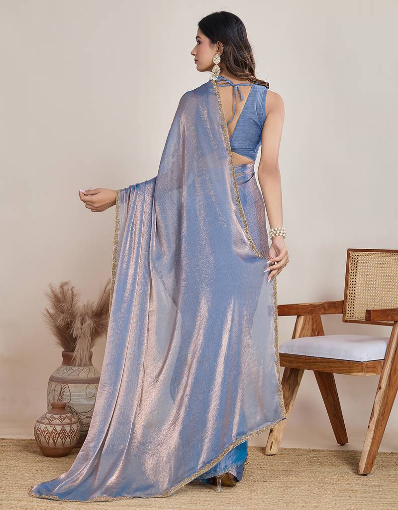 Light blue color fendy chiffon saree with running blouse