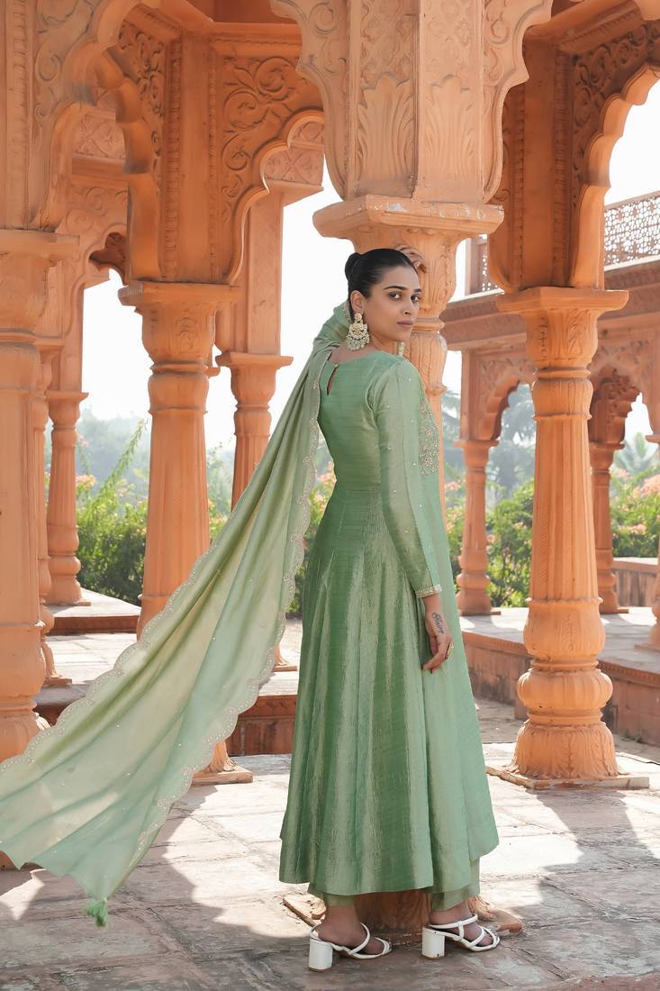 | Product Name | Pista Color Vichitra Silk Fabric Embroidered Partywear Suit | |