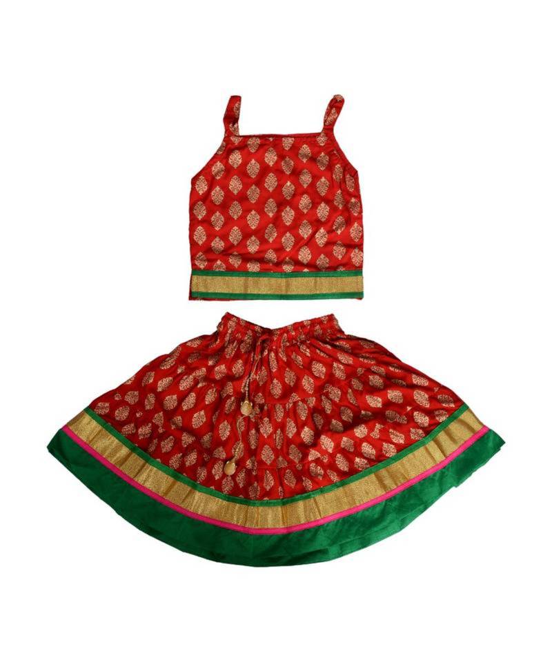 | Product Name | Red Baby Girls Skirt And Top Self Design Hand Block Gold Print | |