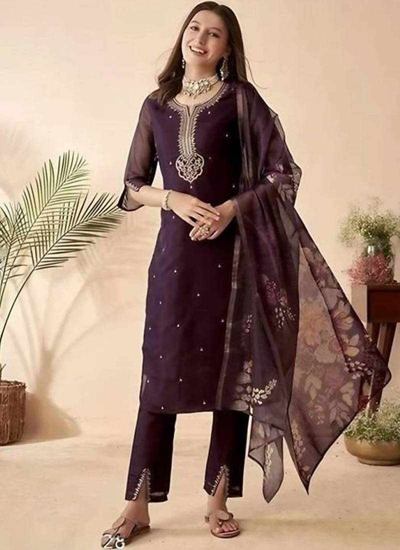 | Product Name | Wine Chanderi Heavy Thread Embroidery Sequins Work With Printed Dupatta Kurta Pant Set | |