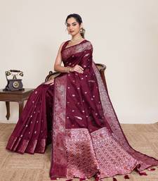 Maroon zari weaving pure jacquard banarasi silk saree – women’s designer saree collection with blouse