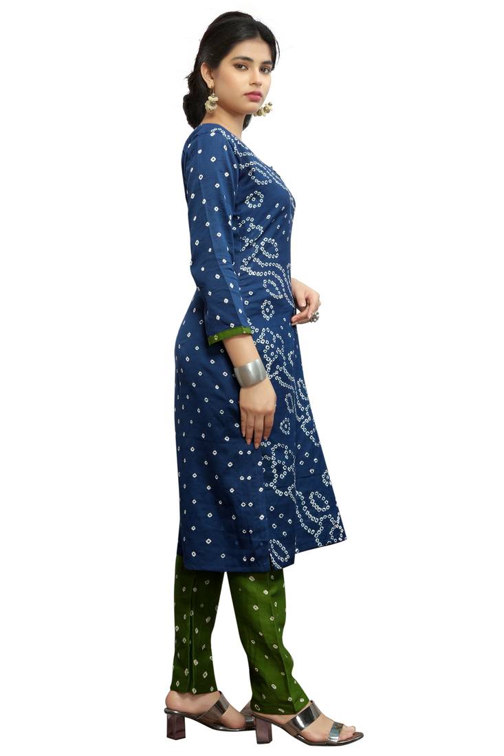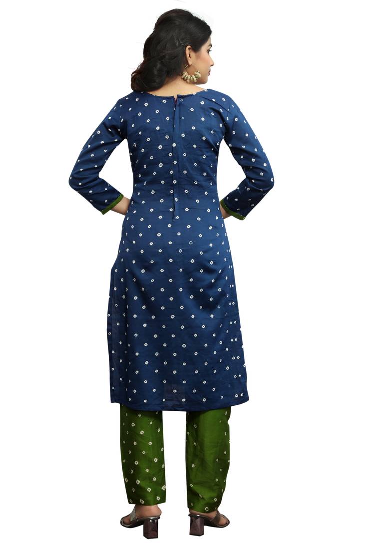 | Product Name | Blue Color Bandhej Satin Cotton Salwar Suit Dupatta Bandhani Dress Material | |