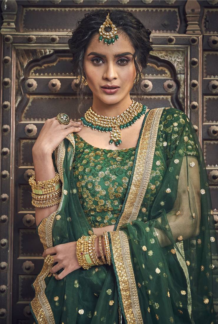 | Product Name | Green Sequins And Zari Embroidered Soft Net Festive & Party Wear Semi Stitched Bridal Lehenga | |