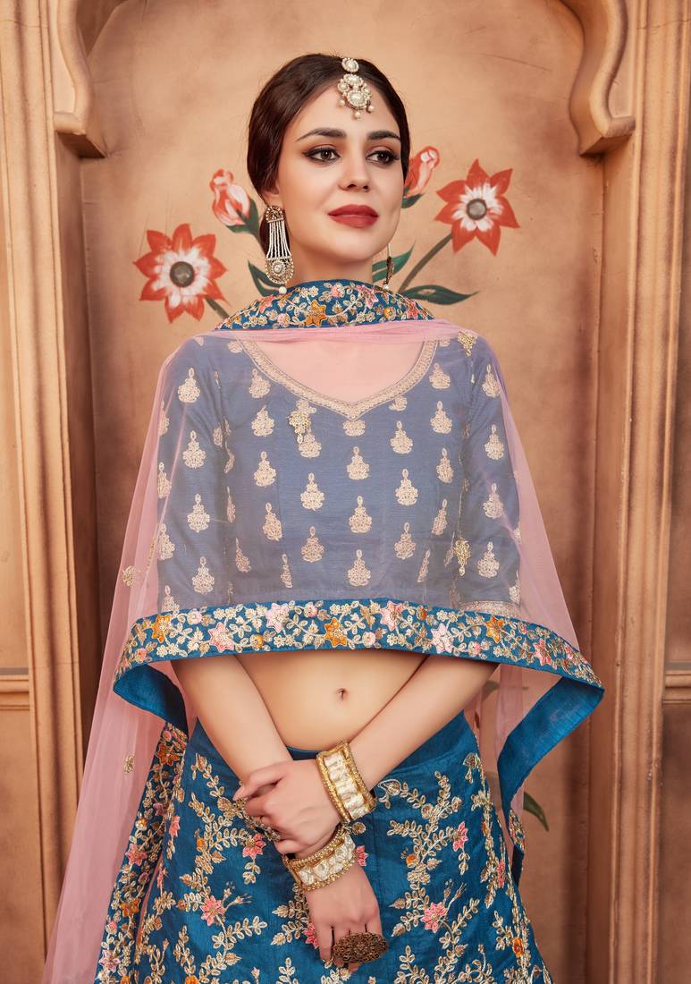 | Product Name | Turquoise Thread And Sequins Embroidered Art Silk Festive Bridal Wedding & Party Wear Semi Stitched Lehenga Choli | |