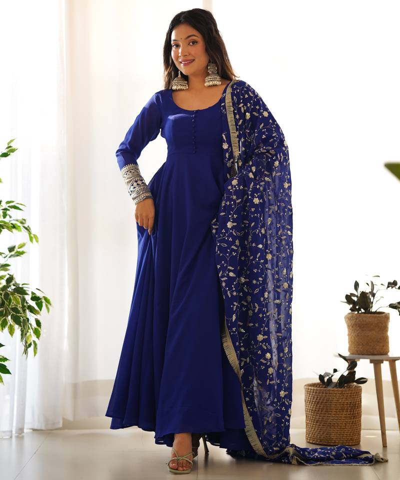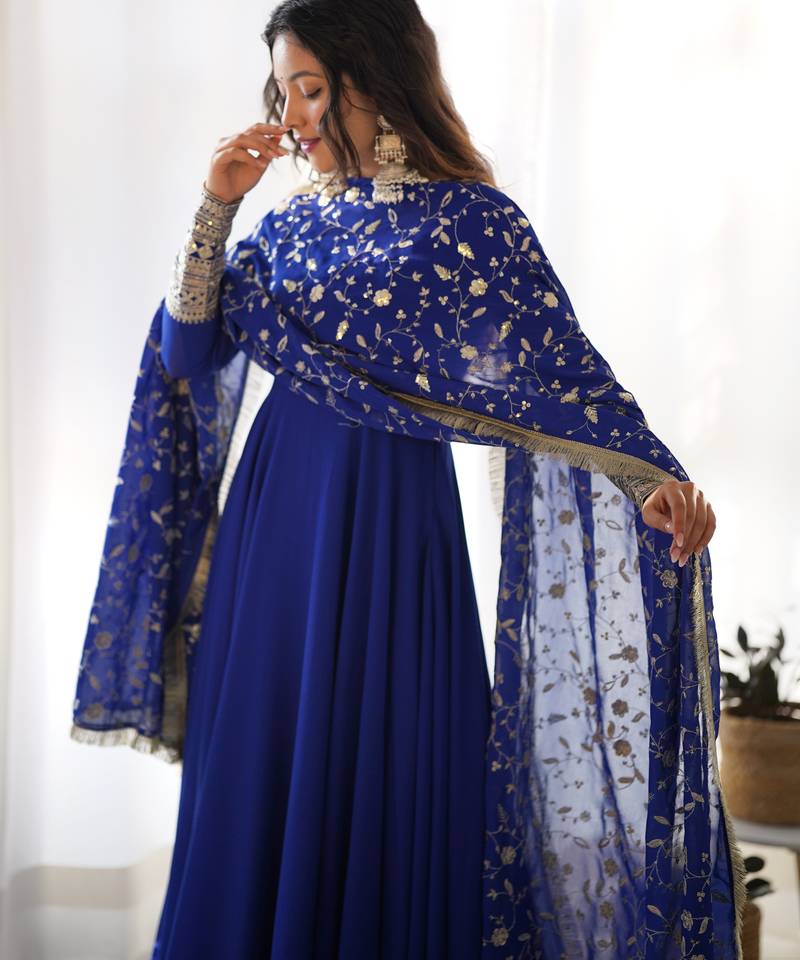 | Product Name | Blue Georgette Gown Duppta Full Set With Pent Ready To Wear | |