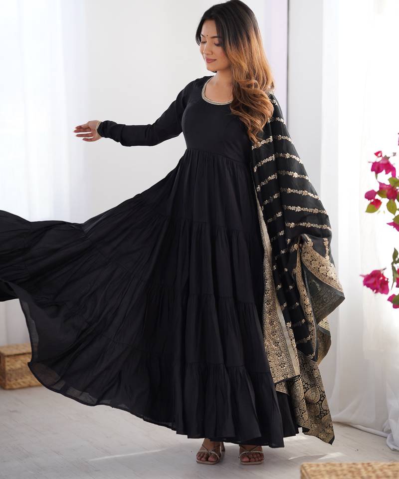 | Product Name | Heavy Pure Romansilk Chanderi Black Gown | |