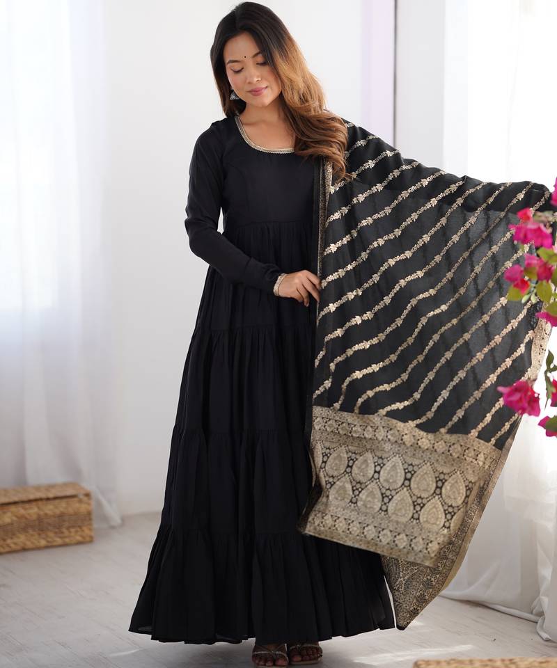 Heavy pure romansilk chanderi black gown stitched