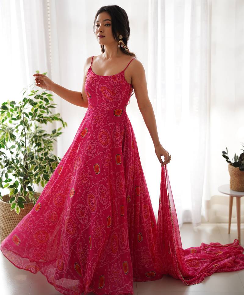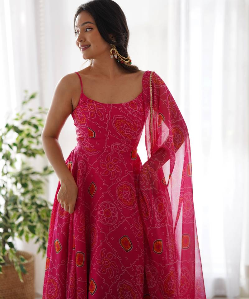 Pure soft fox georgette fully flare printed anarkali,with duppta set,pent ready to wear stitched