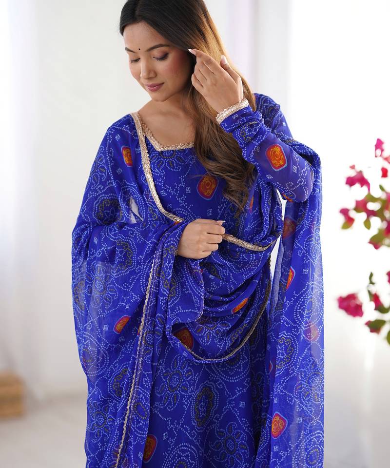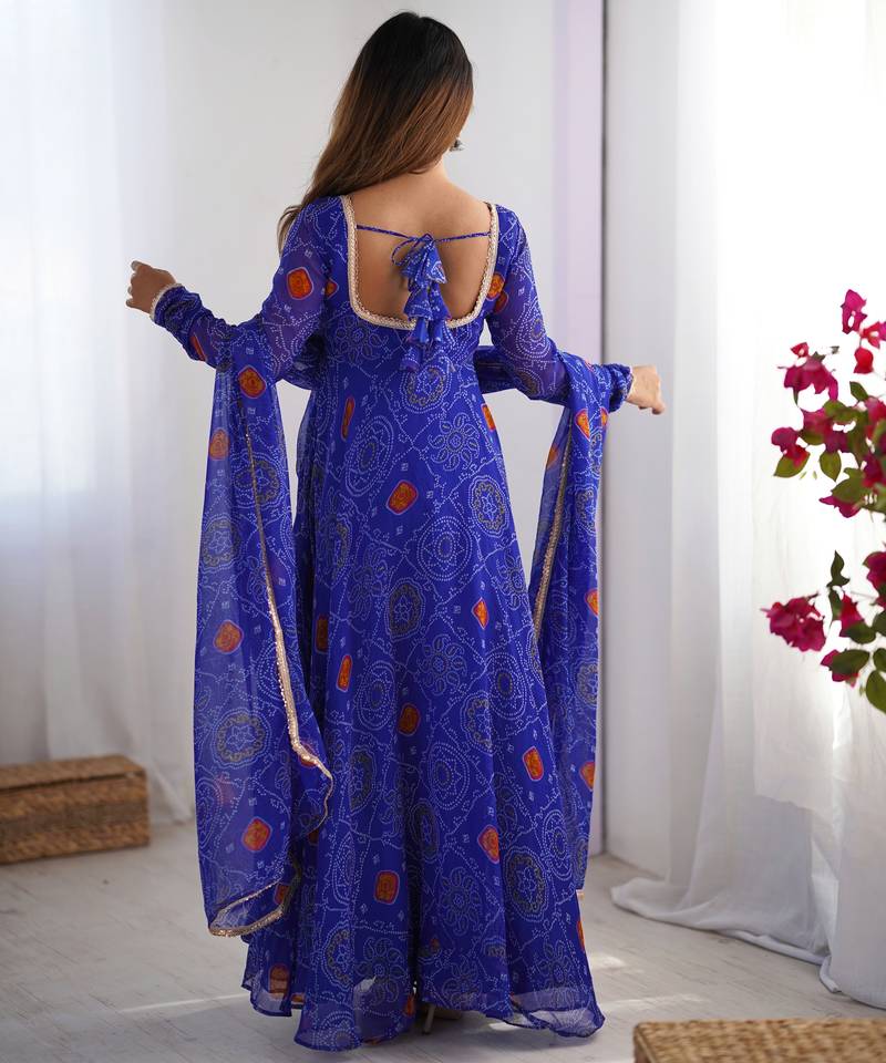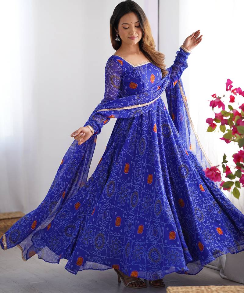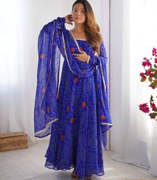 Pure soft fox georgette fully flare printed anarkali,with duppta set,pent ready to wear stitched