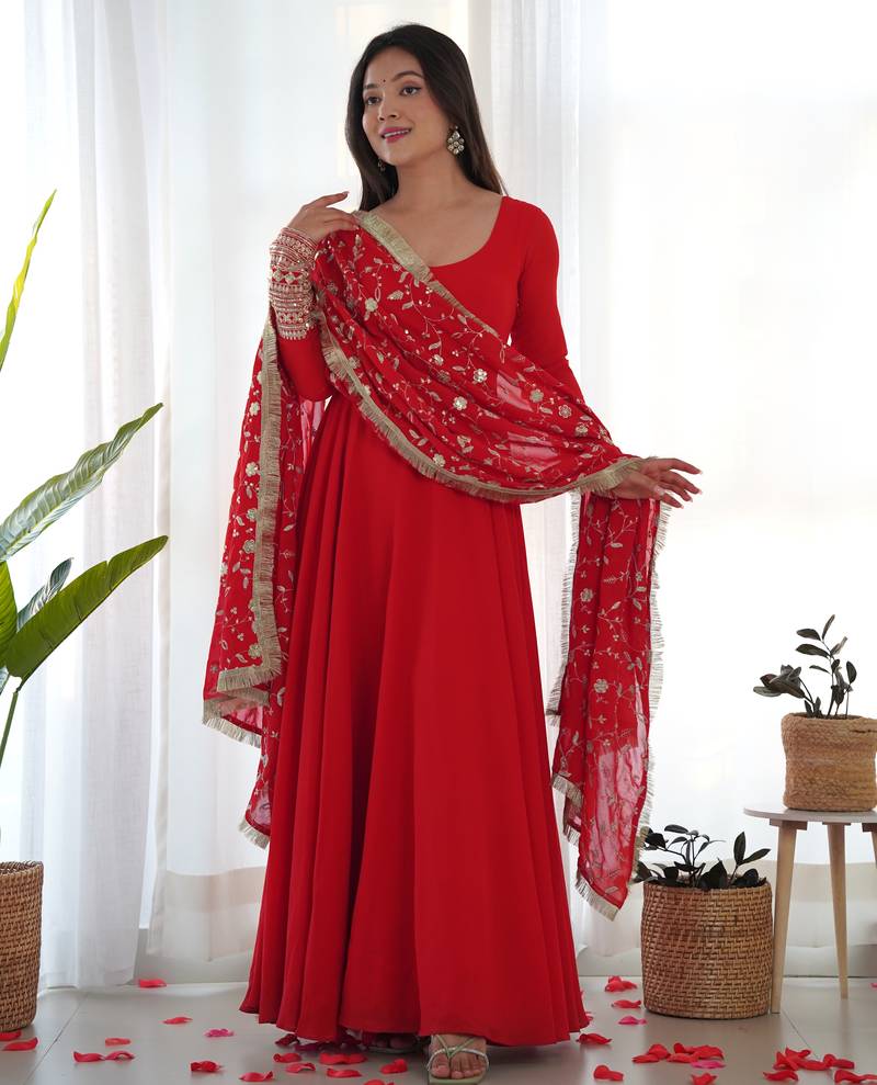 | Product Name | Red Georgette Gown Duppta Full Set With Pent Ready To Wear | |